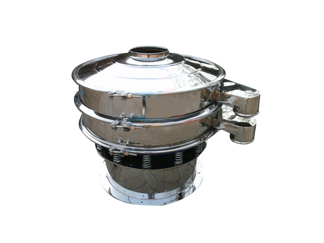 旋振篩(圓形振動篩)由立式振動電機作激振源,因為其上下端重錘安裝在發動軸兩側,使電機的旋轉運動轉變為垂直、水平、傾斜的三次元運動。  旋振篩產品特點:  設計精巧,耐用,適合任何粉類以及粘性液體的篩分。  操作簡單,換網方便,易于清洗。  篩網無阻塞,粉末無飛揚。  雜質以及粗料自動排出,并且可以與給料設備、輸送設備配套使用,處理量大,生產效率高。  尺寸小,節省空間,易于移動?! ∫子陴B護,可單層或多層使用?! 『Y網設計合理耐用,換網只需3-5分鐘?! 『Y網可達5層,篩分出6種不同顆粒大小的物料